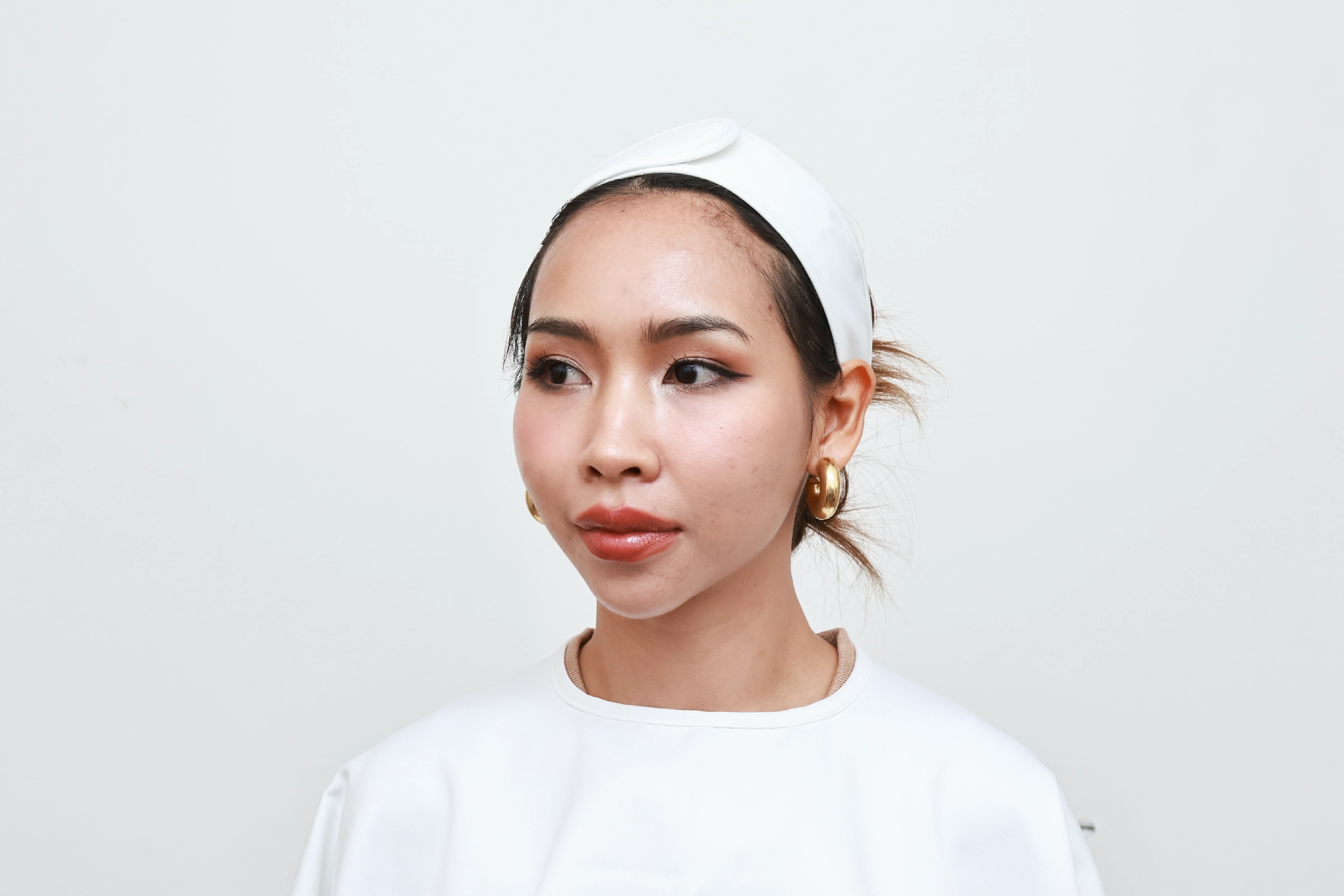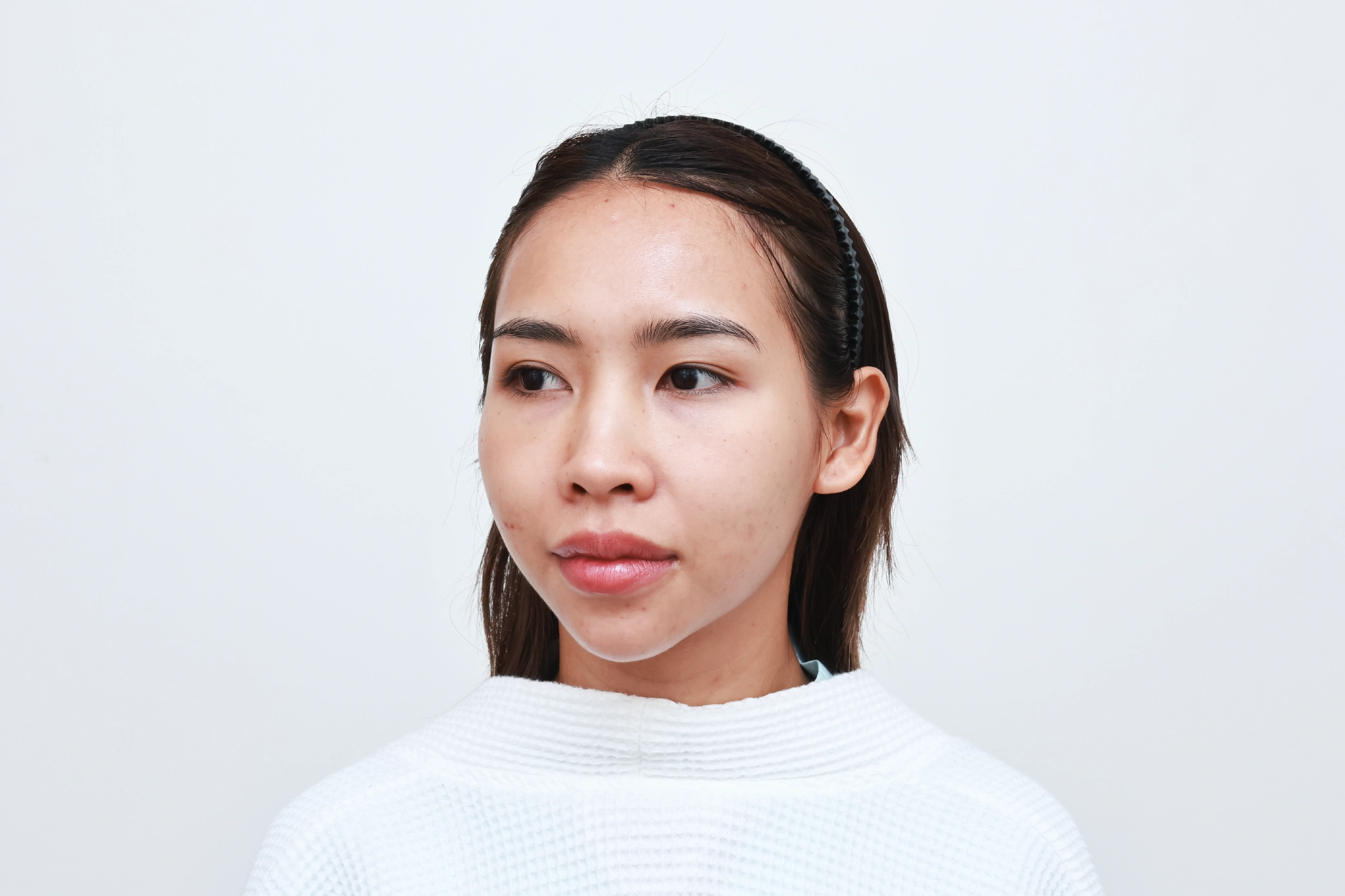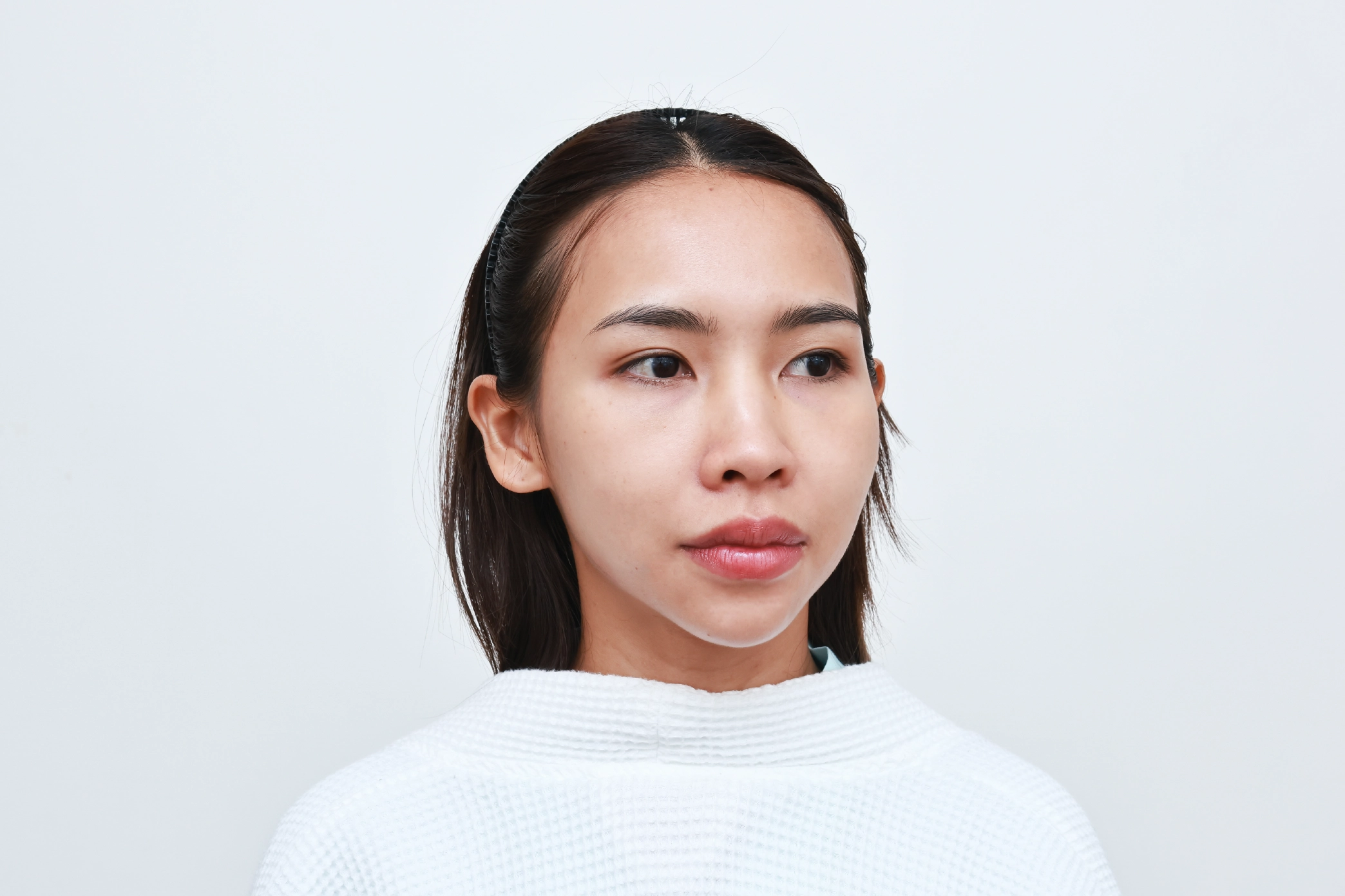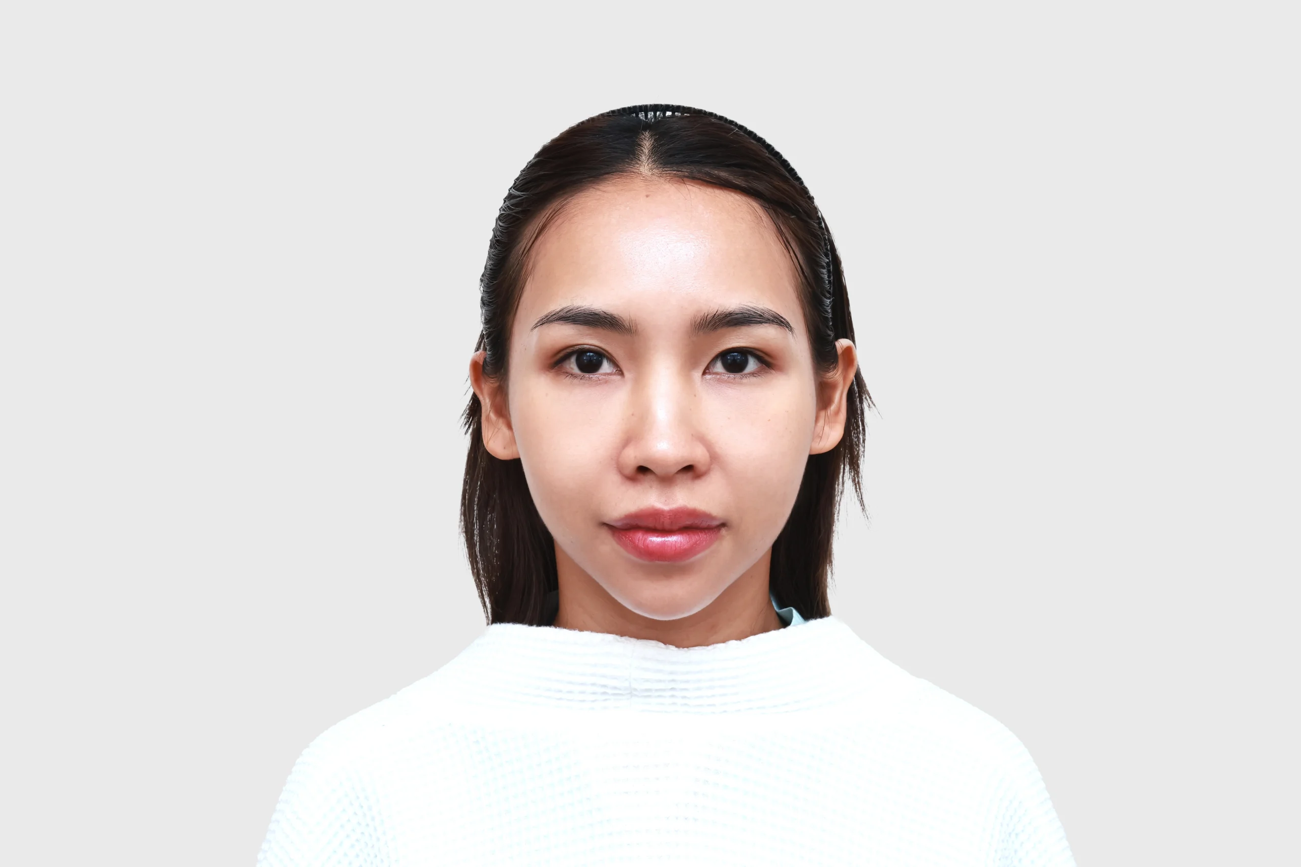 ก่อนทำ เคสนี้น้องมีปัญหาคิ้วตก หางตาตก ทำให้ดวงตาดูไม่สดใส ชั้นตาไม่เท่ากัน หมอประเมินแล้วพบว่าระยะห่างของคิ้วกับชั้นตาค่อนข้างแคบ ตรงนี้เป็นสาเหตุที่ทำให้ตาดูดุ ดูตาเศร้า แล้วก็ทำให้หน้าตาดูไม่สดใสนั่นเอง ถ้าทำหัตถการส่องกล้องยกคิ้ว Endo-Brow Lift ก็จะช่วยยกคิ้วขึ้น ขยายพื้นที่ตรงบริเวณระหว่างคิ้วและชั้นตาให้มากขึ้นได้
