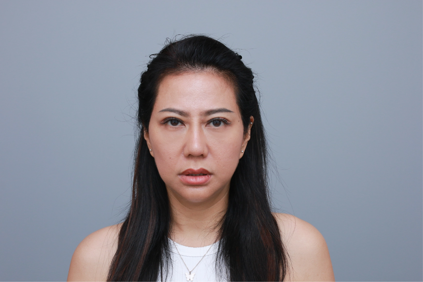 ลักษณะใบหน้าและผิวหน้าก่อนทำ มีความหย่อนคล้อยในระดับปานกลาง-มาก หางตาตก ทำให้ตาดูดุ มีร่องและริ้วรอยใต้ตา ทำให้ผิวใต้ตาไม่เรียบเนียน แต่งหน้ายาก ร่องแก้มลึกและมีร่องน้ำหมาก แก้มหย่อนคล้อย จนกลายเป็นกระเปาะแก้ม ทำให้หน้าไม่ได้รูป รูปทรงของใบหน้าดูไม่เรียวเหมือนตอนที่ยังอายุน้อยกว่านี้ หมอแนะนำการทำ Facelift ดึงหน้าย้อนวัย หลังผ่าตัดดึงหน้า ช่วยลดความหย่อนคล้อย ผิวหน้ากระชับ ดูเต่งตึงขึ้น ยกหางตา ช่วยแก้ไขหางตาตก ร่องใต้ตาและริ้วรอยรอบดวงตาดูจางลง ทำให้ตาดูสดใส อ่อนกว่าวัย ร่องแก้มกับร่องน้ำหมากหายไป แก้มยกขึ้น ไม่หย่อนคล้อย ทำให้หน้าดูเรียว กรอบหน้าชัดขึ้น เมื่อทำร่วมกับการเสริมคาง ช่วยให้ใบหน้าเรียวได้สัดส่วน ดูย้อนวัยเหมือนลดอายุไป 15-20 ปี