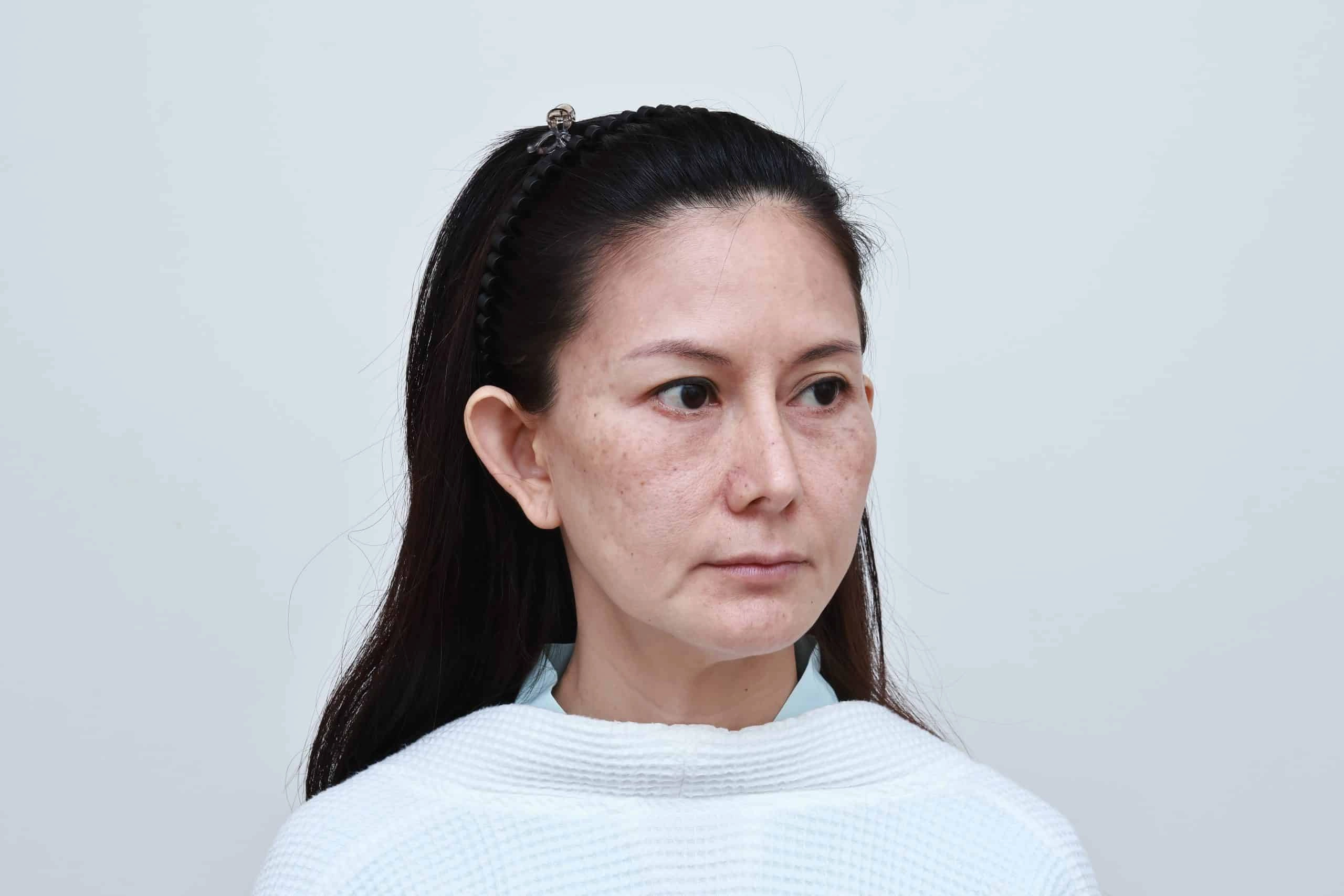 ก่อนทำ คุณมามิรู้สึกสูญเสียความมั่นใจเมื่อพบปะเพื่อนฝูง เนื่องจากปัญหา ใบหน้าหย่อนคล้อย ริ้วรอย ร่องแก้มลึก ทำให้คงามมั่นใจลดลง"