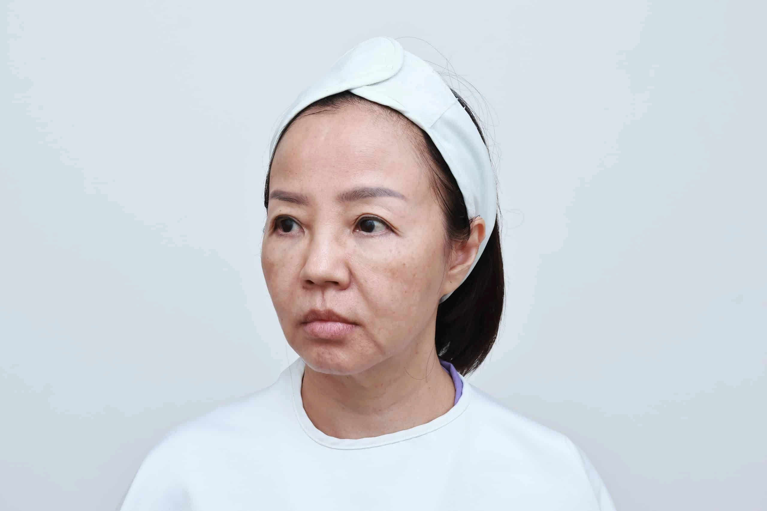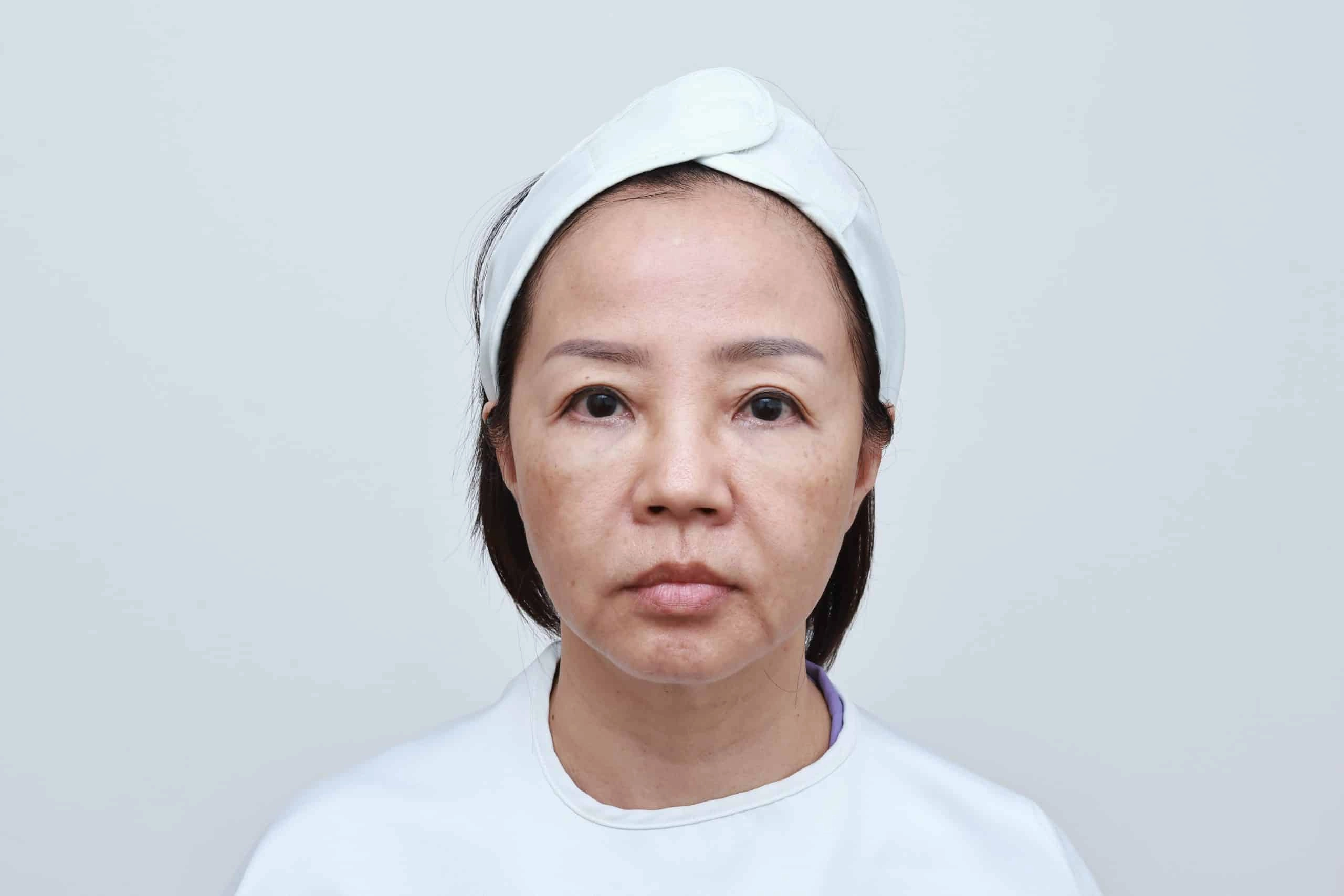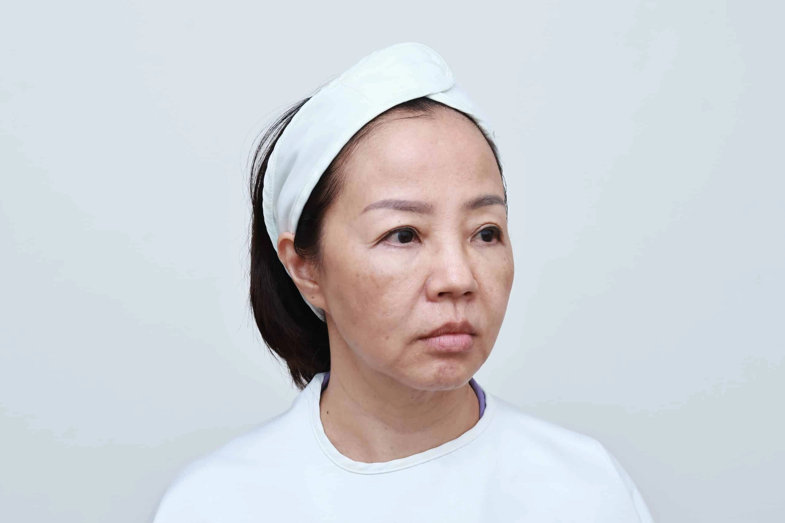 คุณฮวง, วัย 59 ปี, เป็นตัวอย่างเคสที่แสดงถึงปัญหาความหย่อนคล้อยของผิวทั่วใบหน้าและลำคอ โดยเฉพาะบริเวณลำคอที่เป็นจุดที่คุณฮวงกังวลมากที่สุด