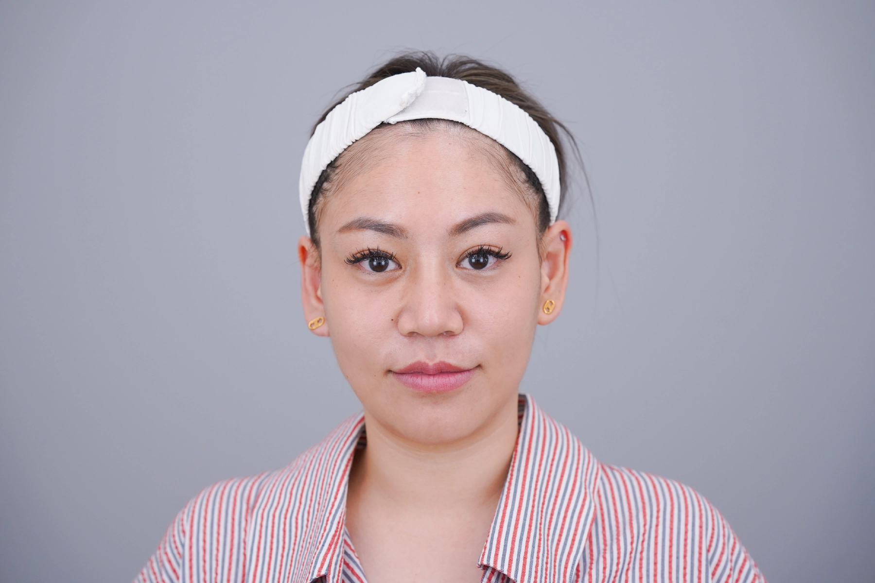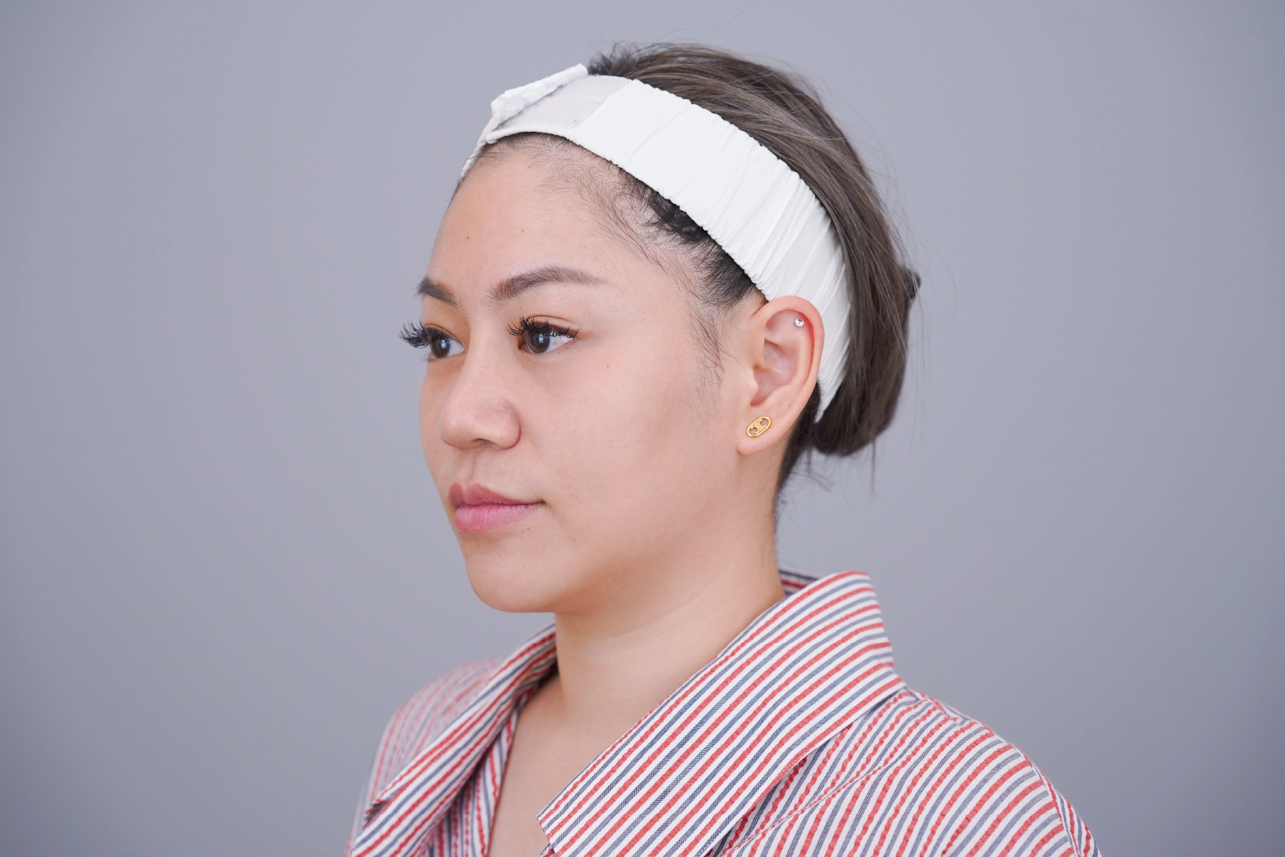 คุณบิว จากเพจ @eb.bahboh เข้ามาปรึกษาหมอเรื่องการเสริมจมูก พื้นฐานจมูกของคุณบิวค่อนข้างเป็นทรงอยู่แล้ว แต่คนไข้ต้องการให้หน้าดูมีมิติมากขึ้น และอยากเพิ่มความละมุนให้กับบริเวณปลายจมูก พร้อมรีเควสหมอว่าไม่เอาปลายแหลม ขอปลายละมุนๆ ดูเนียนเป็นธรรมชาติ หมอแนะนำให้คุณบิวเสริมจมูกแบบ Closed ด้วยเทคนิคเกาหลี พร้อมรองปลายด้วยกระดูกอ่อนหลังใบหู โดยที่เมื่อผ่าตัดนำกระดูกอ่อนหลังหูออกมาใช้งาน รูปร่างของหูจะไม่เปลี่ยนไป และไม่มีแผลบริเวณด้านหน้าใบหูให้เห็นเลย ผลลัพธ์ที่ได้คือจมูกสโลปเนียนรับกับหน้าผาก ดูสวยเป็นธรรมชาติ สันจมูกไม่แยกชั้นกับหน้าผาก ดูโด่งกำลังดี ทำให้หน้าดูมีมิติ บอกเลยว่าทรงจมูกของคุณบิว มีลูกค้าหยิบมาเป็น Reference เยอะมาก